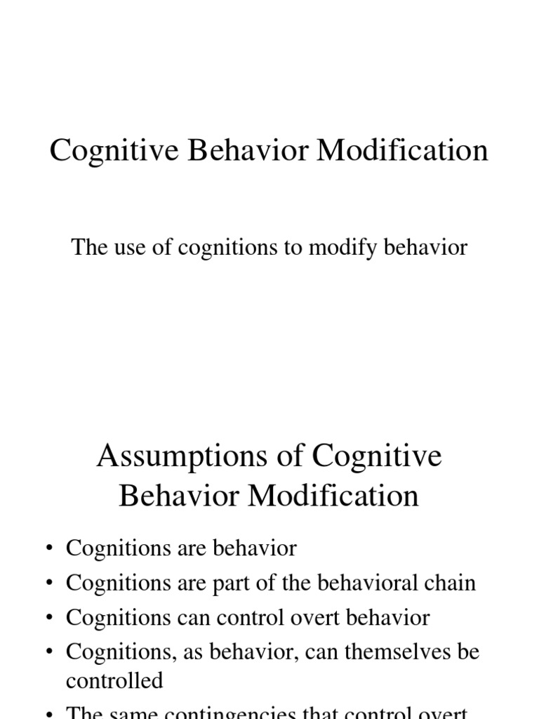 Modification in its terms growing in part out of these new conditions will subsequently be required from time to time. Cbt focuses on challenging and changing unhelpful cognitive distortions (e.g. Cognitive behavior modification prepared by: Strengths acknowledges importance of cognition in learning. Cbm can be an effective therapy technique.